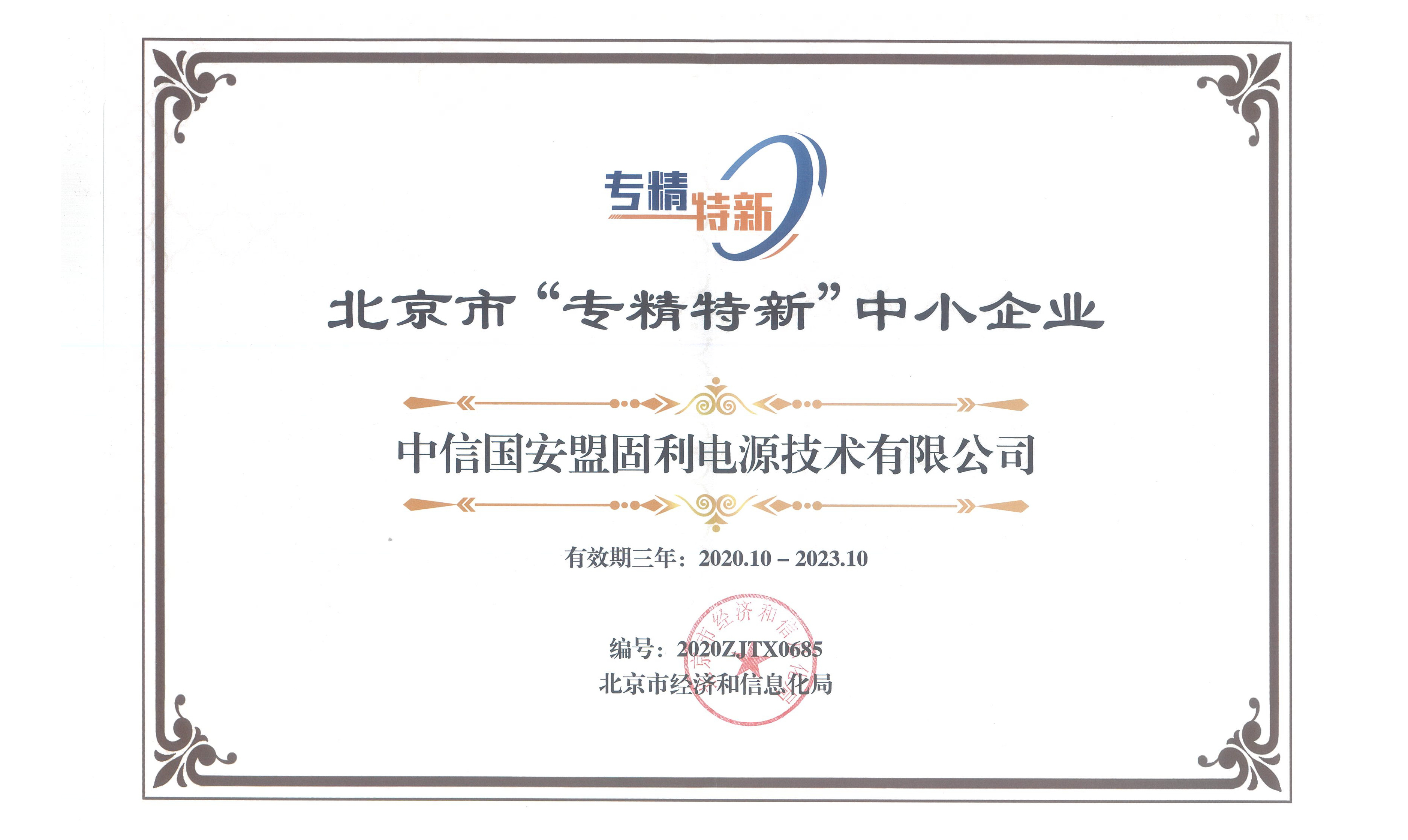 喜讯丨中信国安木森体育电源技术有限公司被认定为北京市“专精特新…